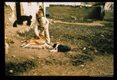 Home butchering of sheep in Central Sierra, Peru. Dog at the ready.